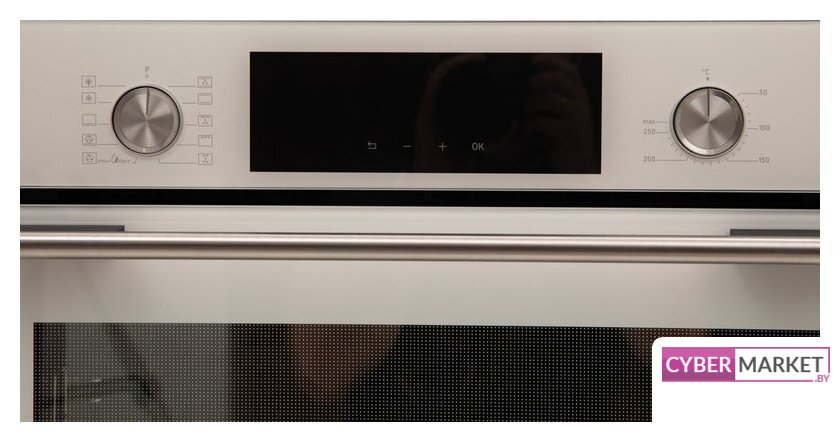 электрический с конвекцией, объем 72 л, утапливаемые переключатели, 8 режимов, очистка паровая, 3 стекла в дверце, направляющие проволочные + телескопические (1 уровень)