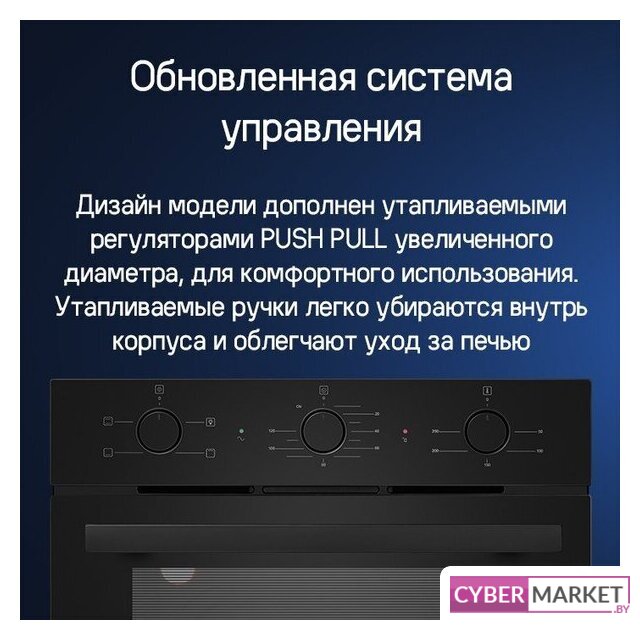 электрический с конвекцией, объем 70 л, 7 режимов, очистка ручная, проволочные направляющие, энергопотребление A