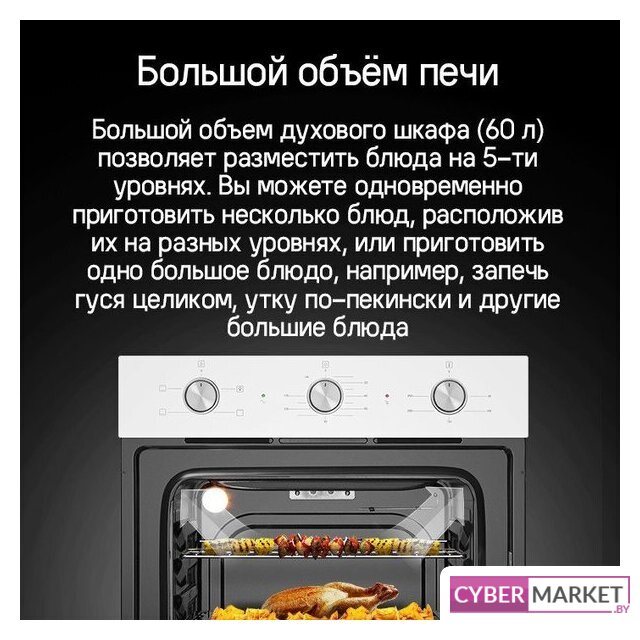 электрический статический, объем 60 л, утапливаемые переключатели, 6 режимов, очистка ручная, 3 стекла в дверце, направляющие рельефные
