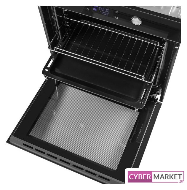 электрический с конвекцией, объем 58 л, 10 режимов, очистка ручная, 2 стекла в дверце, направляющие проволочные + телескопические (2 уровня)