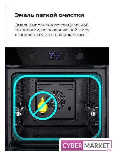 электрический с конвекцией, объем 51 л, 6 режимов, очистка ручная, 2 стекла в дверце, направляющие проволочные