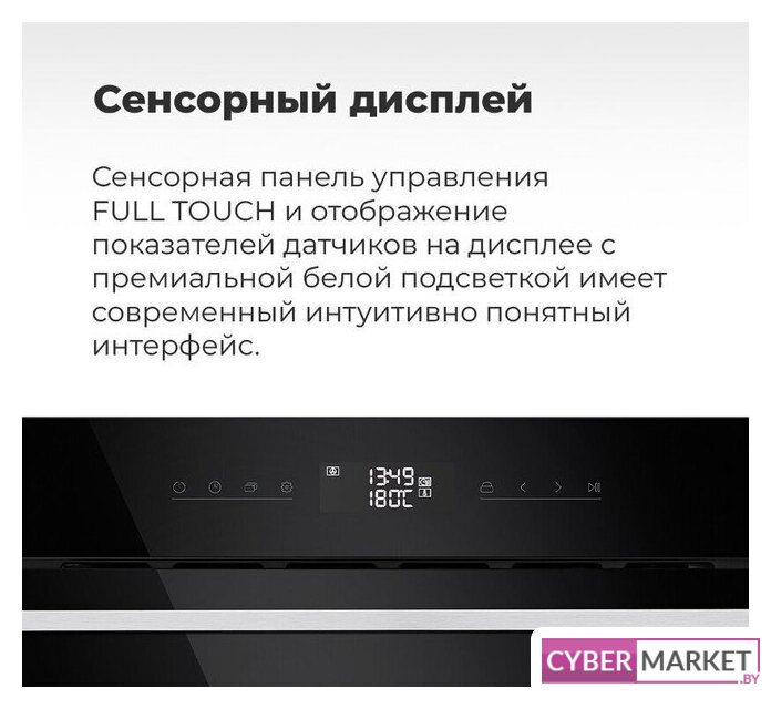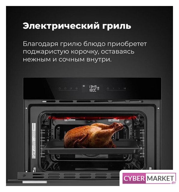 электрический с конвекцией, объем 72 л, 11 режимов, очистка каталитическая + паровая, направляющие проволочные + телескопические (1 уровень), термощуп