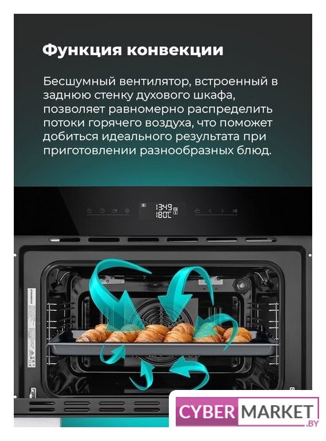 электрический с конвекцией, объем 76 л, 15 режимов, очистка ручная, направляющие проволочные + телескопические (1 уровень)