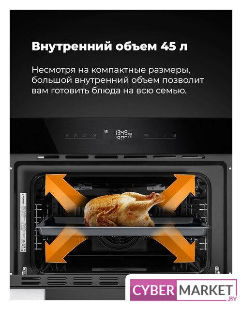 | Режимы работы | верхний нагрев, двухсторонний нагрев, нижний нагрев + конвекция, двухсторонний нагрев + конвекция, двухсторонний + вентиляционный нагрев (3D), размораживание |