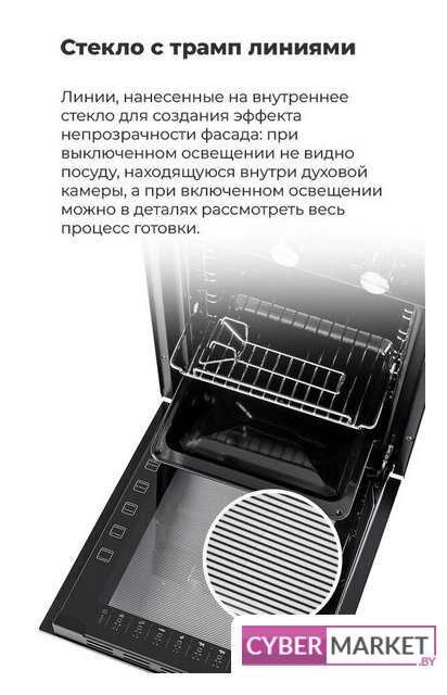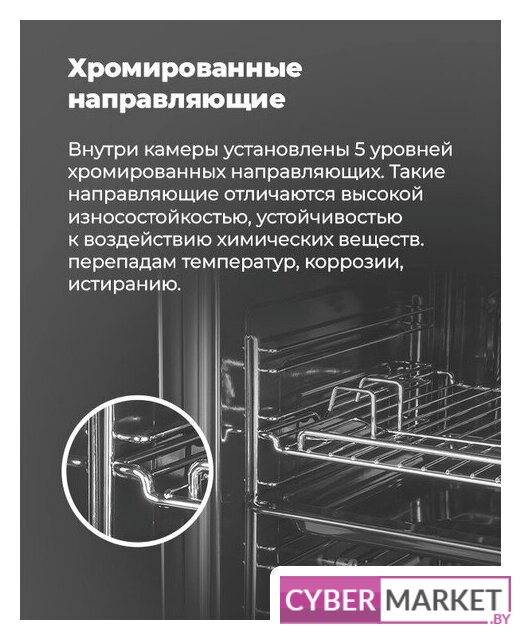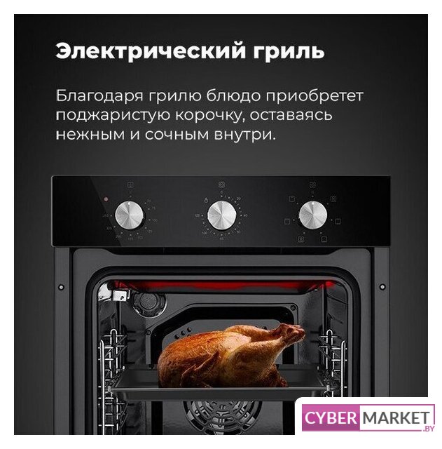 электрический с конвекцией, объем 51 л, 6 режимов, очистка ручная, 2 стекла в дверце, направляющие проволочные