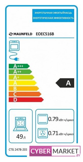 электрический с конвекцией, объем 45 л, 6 режимов, очистка ручная, энергопотребление A