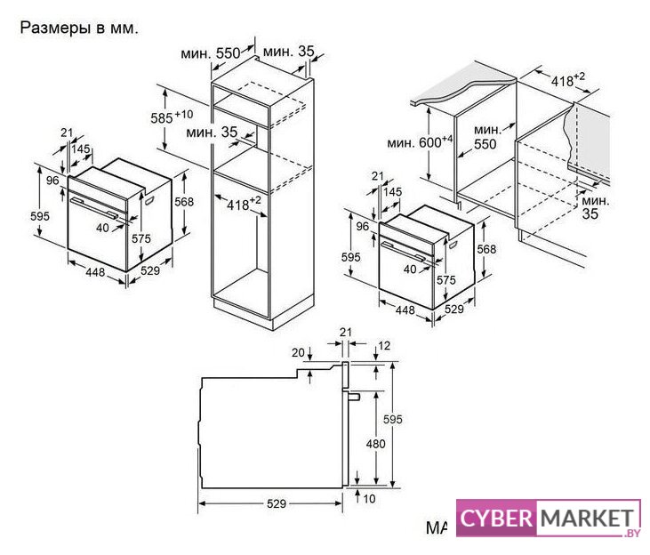 электрический с конвекцией, объем 69 л, 6 режимов, очистка паровая, проволочные направляющие, энергопотребление A