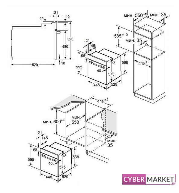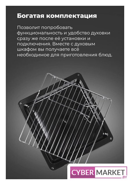 электрический с конвекцией, объем 70 л, утапливаемые переключатели, 8 режимов, очистка ручная, направляющие проволочные