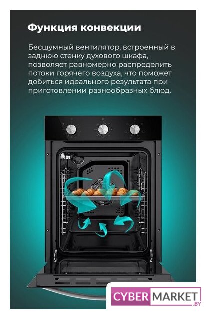 электрический с конвекцией, объем 50 л, утапливаемые переключатели, 6 режимов, 3 стекла в дверце, направляющие проволочные