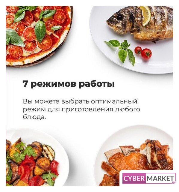 | Режимы работы | нижний нагрев, двухсторонний нагрев, большой гриль, нижний нагрев + конвекция, двухсторонний нагрев + конвекция |