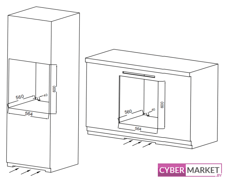электрический с конвекцией, объем 70 л, 8 режимов, очистка ручная, проволочные направляющие, телескопические направляющие, энергопотребление A