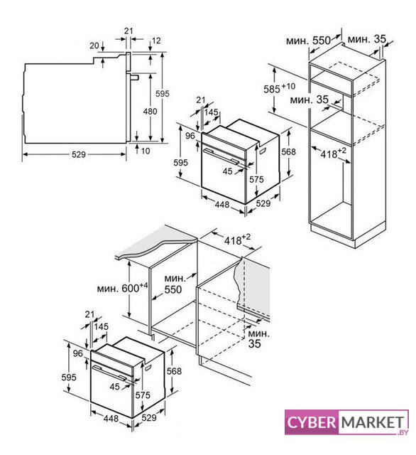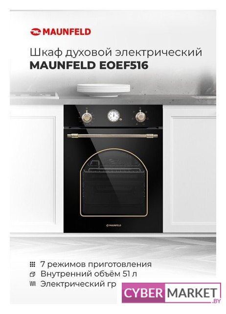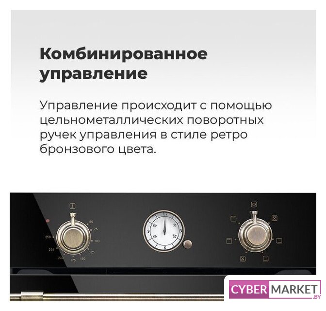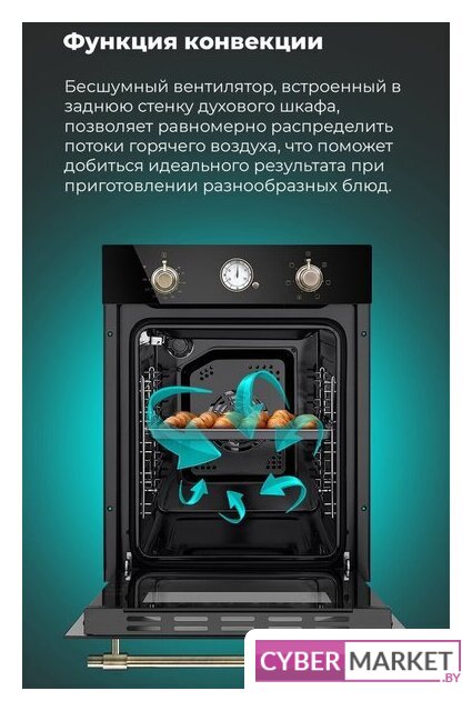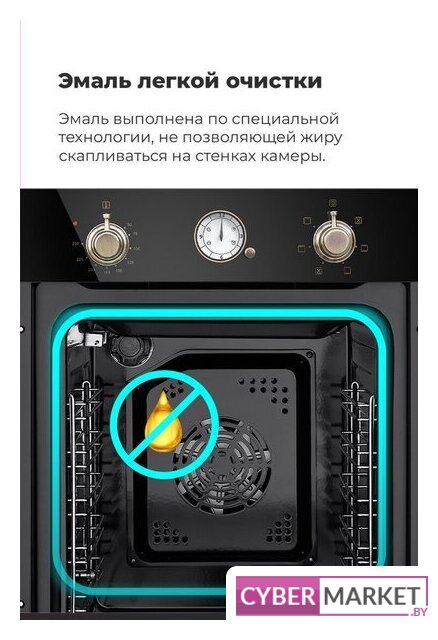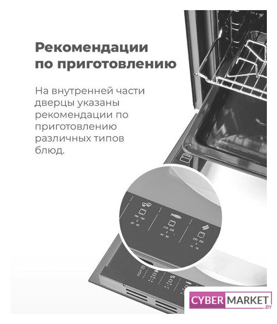 электрический с конвекцией, объем 60 л, утапливаемые переключатели, 6 режимов, очистка паровая, направляющие проволочные