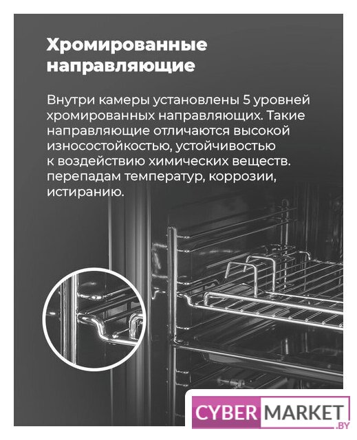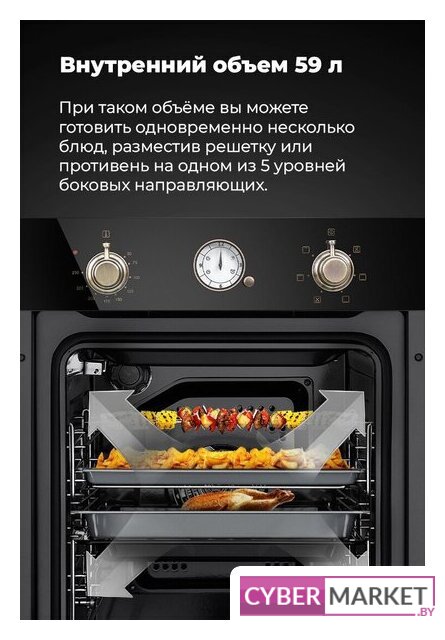 электрический с конвекцией, объем 58 л, 6 режимов, очистка ручная, 2 стекла в дверце, направляющие проволочные