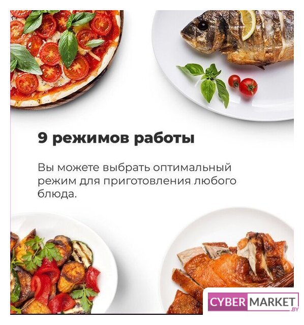 | Режимы работы | нижний нагрев, двухсторонний нагрев, большой гриль, нижний нагрев + конвекция, двухсторонний нагрев + конвекция |