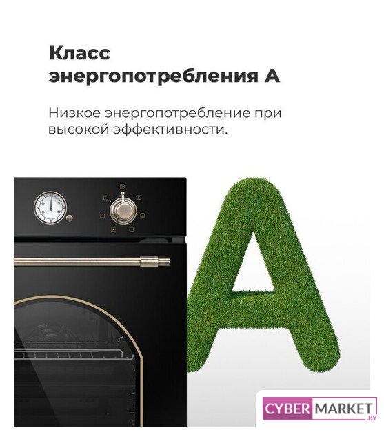 электрический с конвекцией, объем 70 л, 9 режимов, очистка каталитическая, проволочные направляющие, телескопические направляющие, термощуп, энергопотребление A