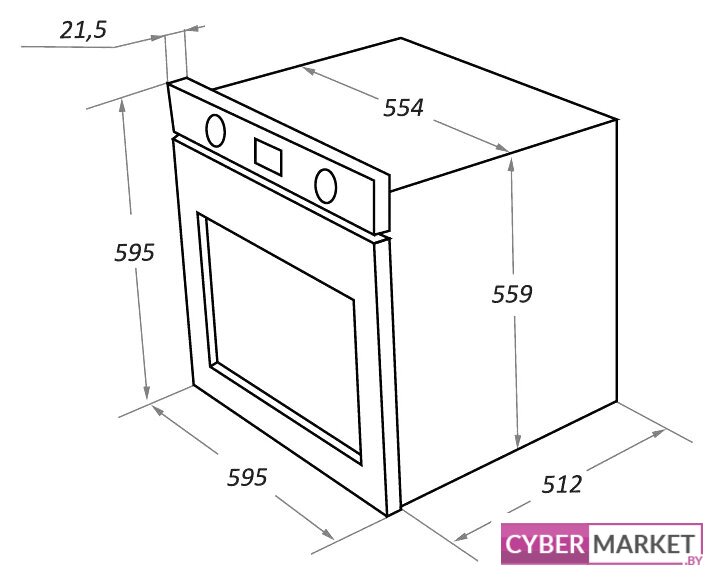электрический с конвекцией, объем 70 л, утапливаемые переключатели, 7 режимов, очистка паровая, 2 стекла в дверце, направляющие проволочные