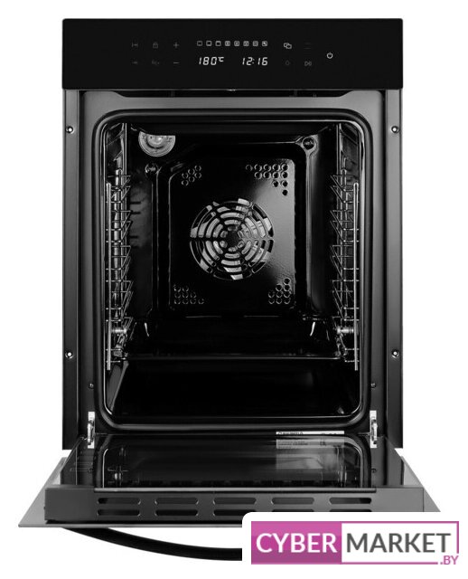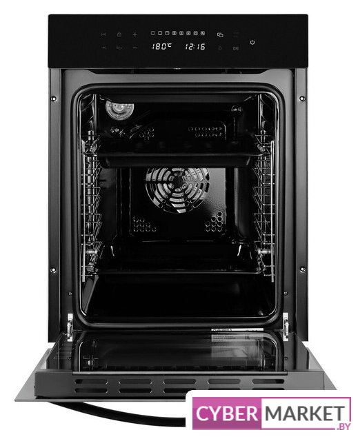 электрический с конвекцией, объем 60 л, утапливаемые переключатели, 10 режимов, очистка ручная, 3 стекла в дверце, направляющие проволочные