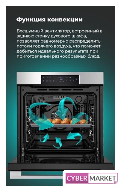 электрический с конвекцией, объем 76 л, 16 режимов, очистка паровая, 3 стекла в дверце, направляющие проволочные + телескопические (1 уровень)