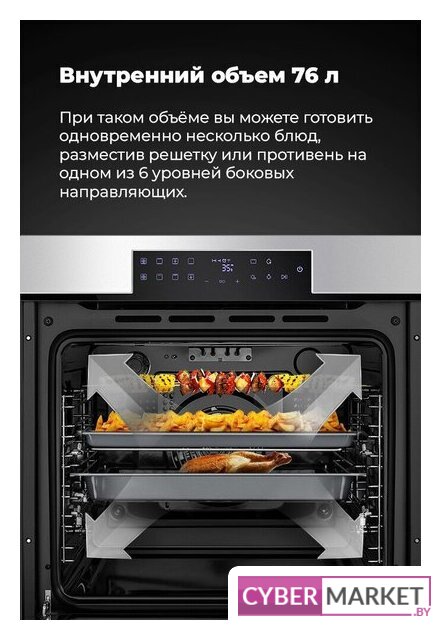 электрический с конвекцией, объем 76 л, 9 режимов, очистка паровая, 3 стекла в дверце, направляющие проволочные + телескопические (2 уровня)