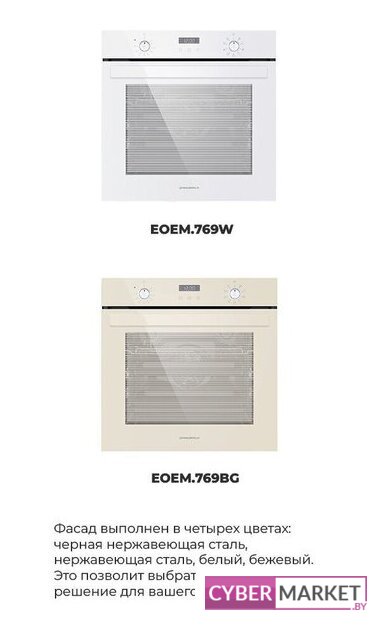 электрический с конвекцией, объем 76 л, 13 режимов, очистка паровая, 3 стекла в дверце, направляющие проволочные + телескопические (1 уровень)