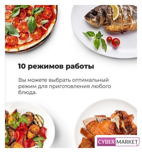 | Режимы работы | двухсторонний нагрев, большой гриль, вентиляционный нагрев, гриль + конвекция, нижний нагрев + конвекция, нижний + вентиляционный нагрев, двухсторонний нагрев + конвекция |