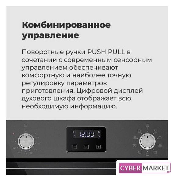 электрический с конвекцией, объем 73 л, утапливаемые переключатели, 8 режимов, очистка ручная, 3 стекла в дверце, направляющие проволочные + телескопические (1 уровень)