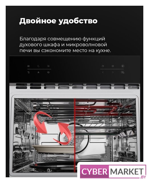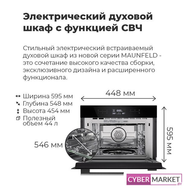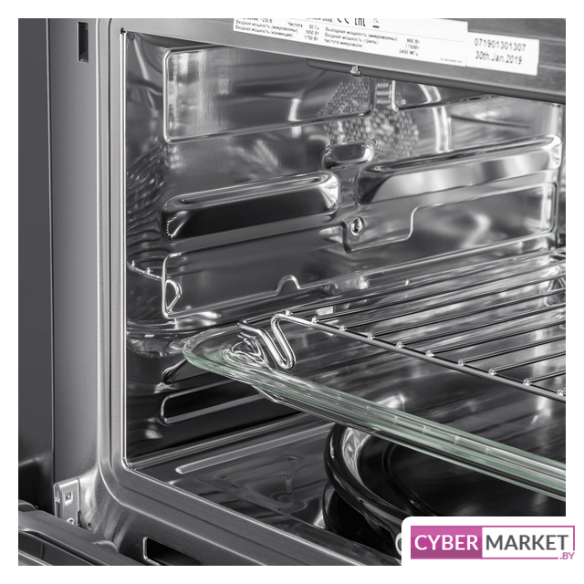 электрический с конвекцией, микроволны, объем 38 л, 8 режимов, автопрограммы, очистка ручная, 3 стекла в дверце, направляющие рельефные