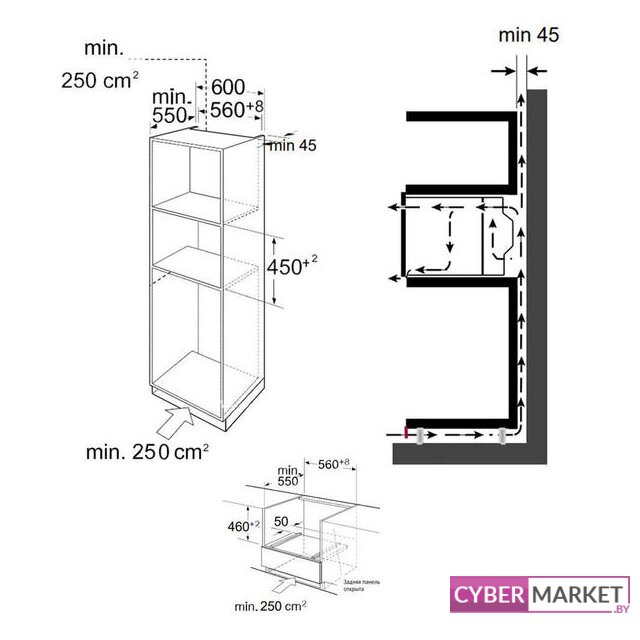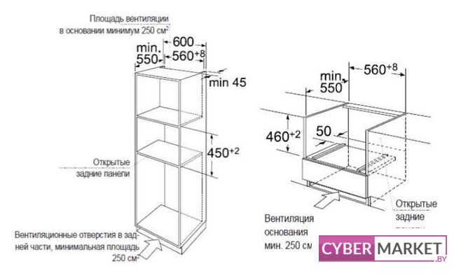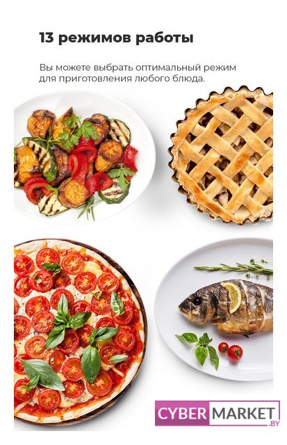 | Режимы работы | вентиляционный нагрев, гриль + конвекция, нижний + вентиляционный нагрев, размораживание |