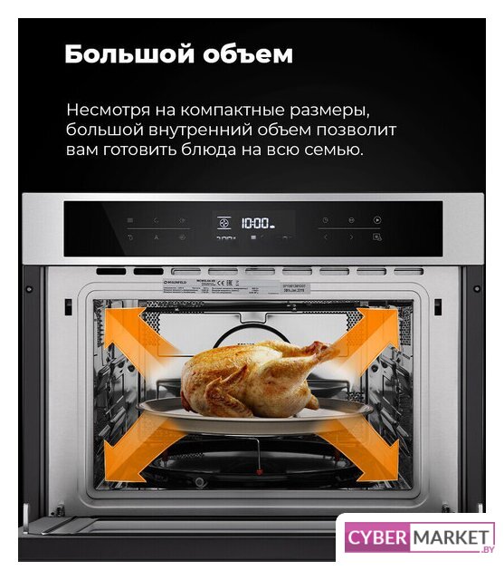 электрический с конвекцией, объем 72 л, 11 режимов, автопрограммы, очистка каталитическая, 3 стекла в дверце, направляющие проволочные + телескопические (1 уровень), термощуп