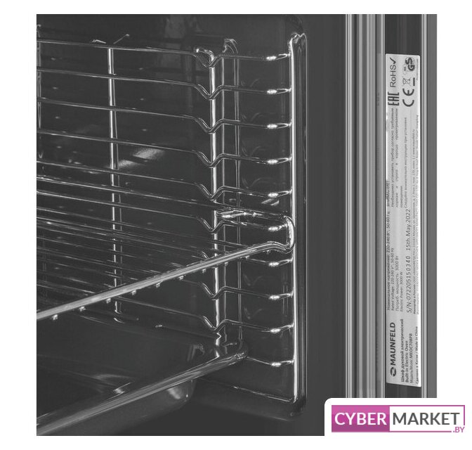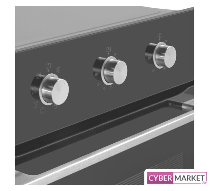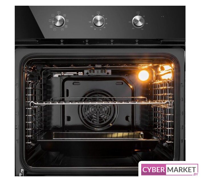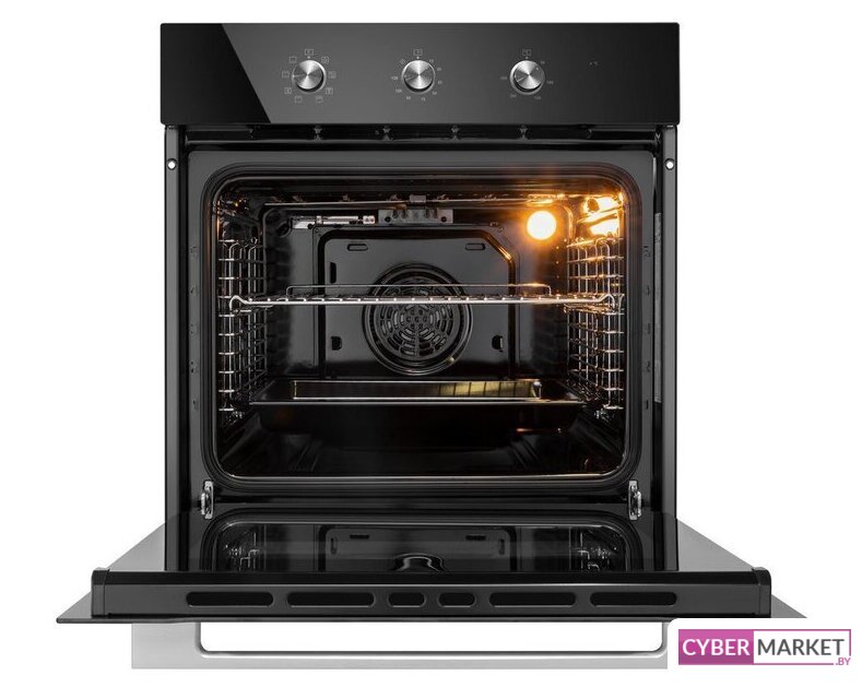 электрический с конвекцией, объем 57 л, утапливаемые переключатели, 8 режимов, очистка ручная, 3 стекла в дверце, направляющие проволочные