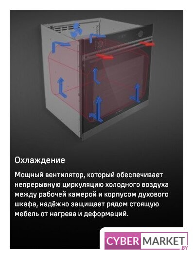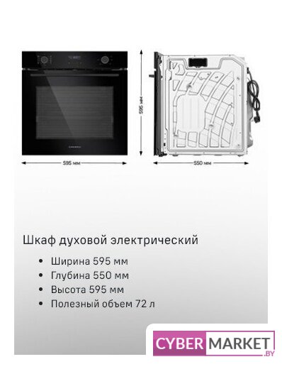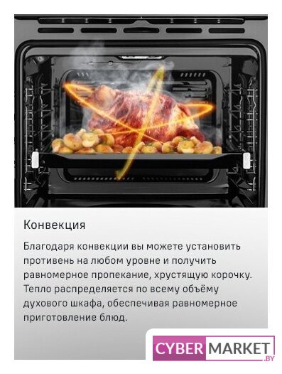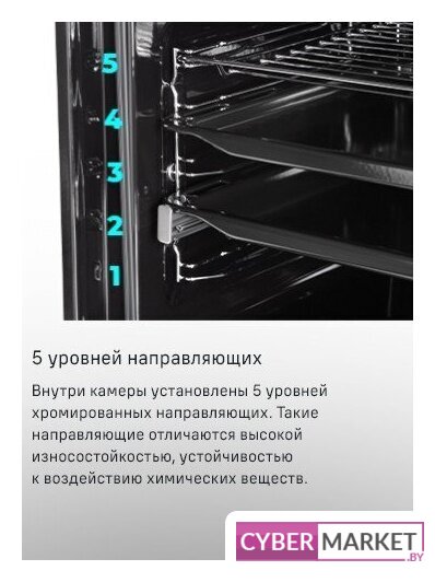 электрический с конвекцией, объем 51 л, 6 режимов, очистка ручная, 2 стекла в дверце, направляющие проволочные