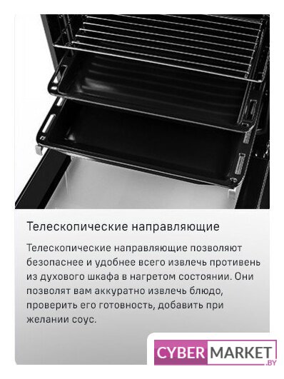 электрический с конвекцией, объем 78 л, утапливаемые переключатели, 9 режимов, очистка каталитическая, 2 стекла в дверце, направляющие проволочные + телескопические (1 уровень)