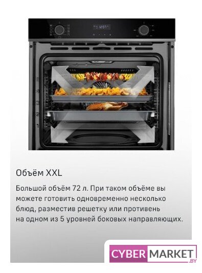 электрический с конвекцией, объем 76 л, 13 режимов, очистка паровая, 3 стекла в дверце, направляющие проволочные + телескопические (1 уровень)