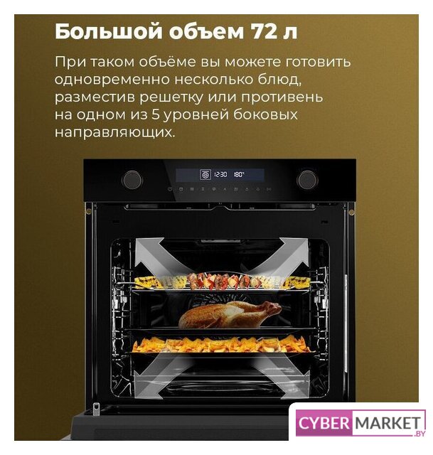 электрический с конвекцией, объем 72 л, 11 режимов, автопрограммы, очистка каталитическая, 3 стекла в дверце, направляющие проволочные + телескопические (1 уровень), термощуп