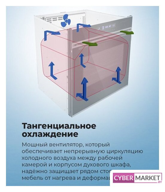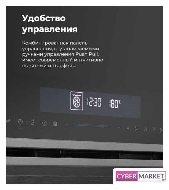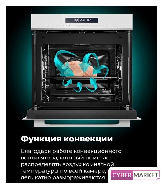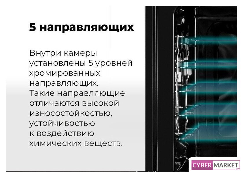 электрический с конвекцией, объем 75 л, утапливаемые переключатели, 8 режимов, очистка ручная, 3 стекла в дверце, направляющие проволочные + телескопические (1 уровень), термощуп