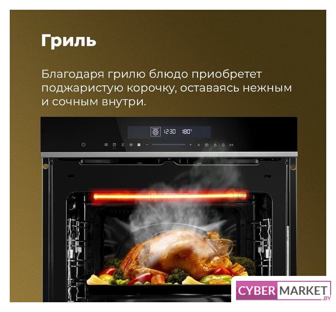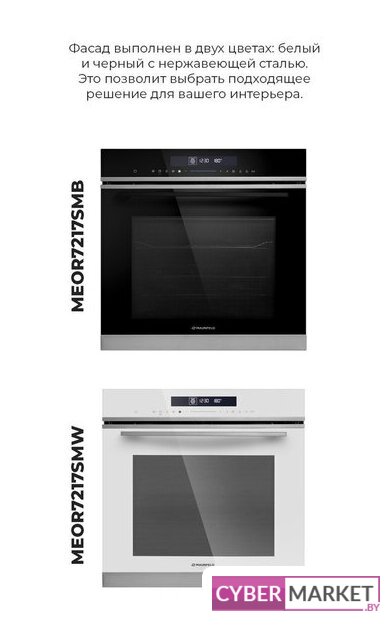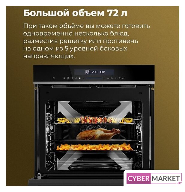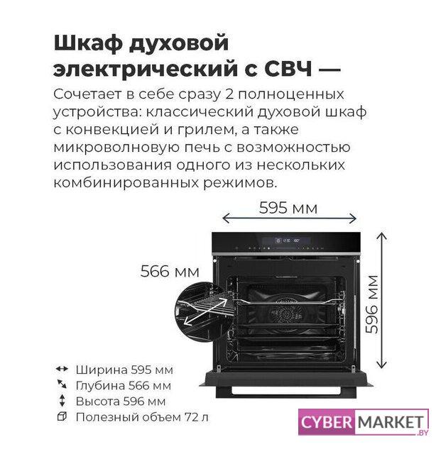 электрический с конвекцией, микроволны, объем 72 л, 14 режимов, автопрограммы, очистка ручная, 3 стекла в дверце, направляющие проволочные