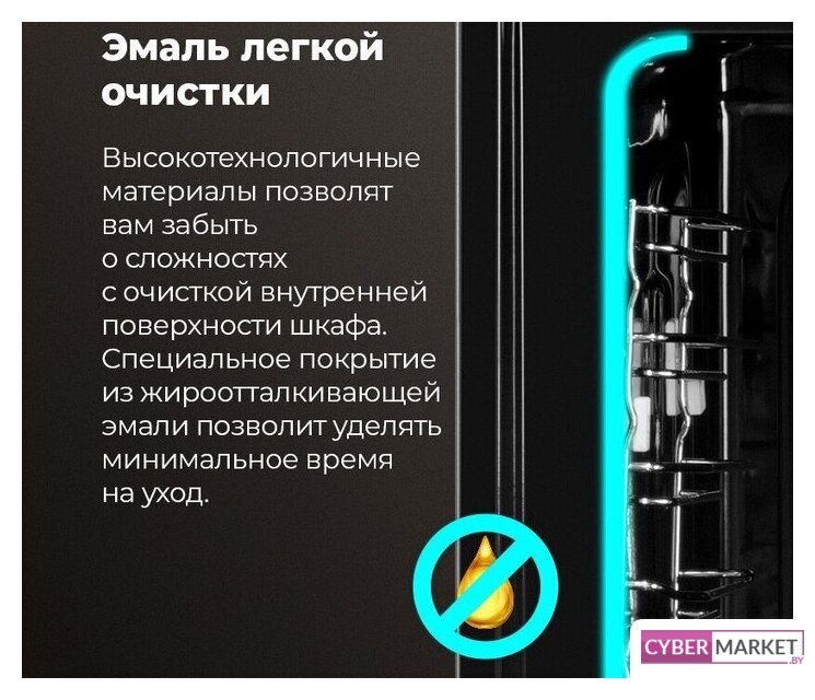 электрический с конвекцией, объем 75 л, 11 режимов, очистка ручная, 3 стекла в дверце, направляющие проволочные + телескопические (1 уровень), термощуп