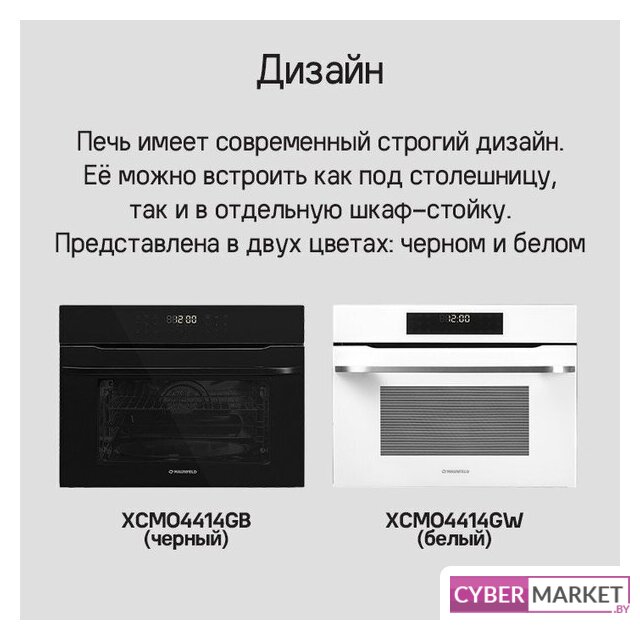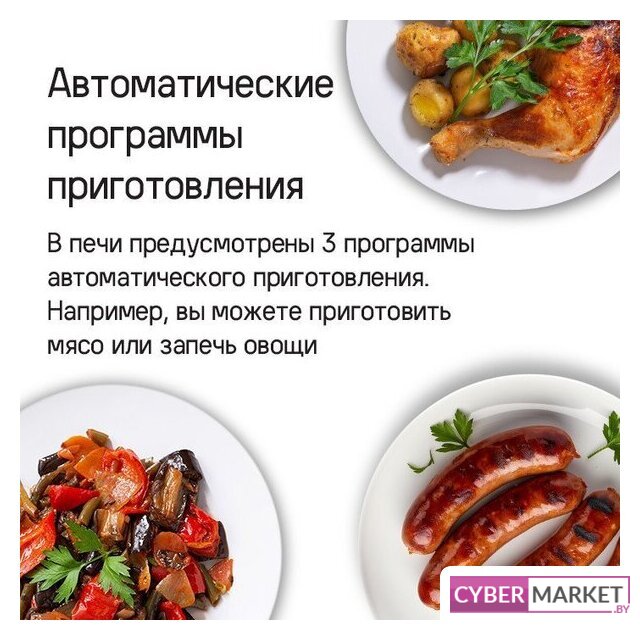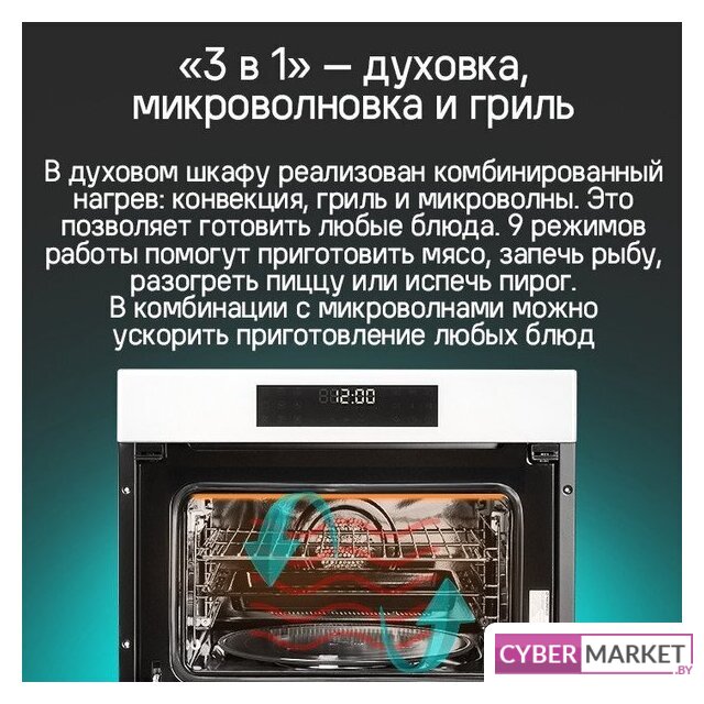 электрический с конвекцией, микроволны, объем 50 л, утапливаемые переключатели, 8 режимов, автопрограммы, очистка паровая (1 уровень)
