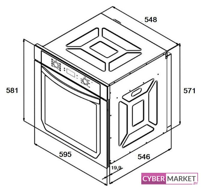 электрический с конвекцией, объем 58 л, 9 режимов, очистка ручная, проволочные направляющие, энергопотребление A