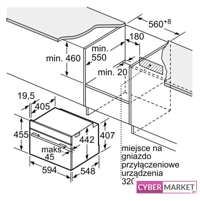 электрический с конвекцией, объем 71 л, 11 режимов, автопрограммы, очистка пиролитическая + паровая, направляющие проволочные