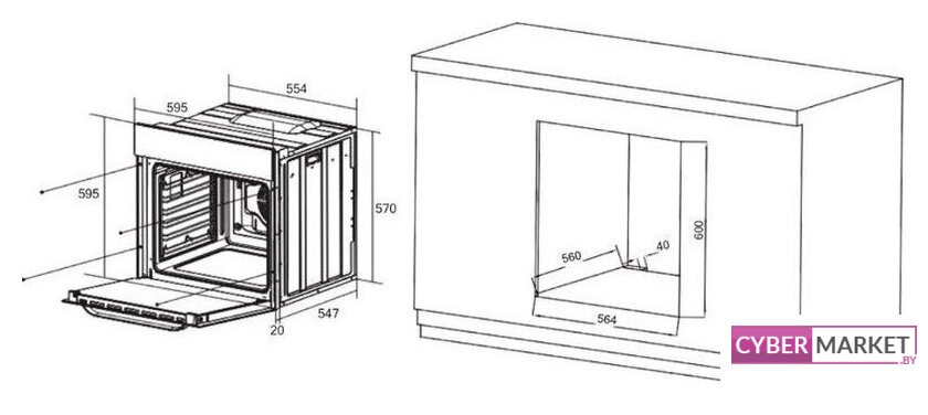 электрический с конвекцией, объем 72 л, утапливаемые переключатели, 8 режимов, очистка каталитическая, 2 стекла в дверце, направляющие проволочные + телескопические (1 уровень), термощуп