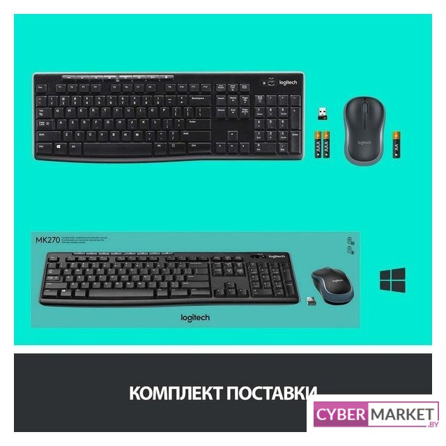 | Полная комплектация набора | - беспроводная мышь- беспроводная клавиатура- одна батарейка стандарта AA- две батарейки стандарта AAA- USB-приемник- документация |