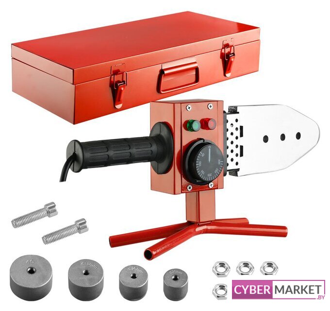 | Комплектация | Аппарат для сварки - 1 штПодставка - 1 штКлюч шестигранный - 1 штНасадки - 20, 25, 32, 40 мм - 4 штВинт - 2 штГайка - 6 штКейс - 1 шт |