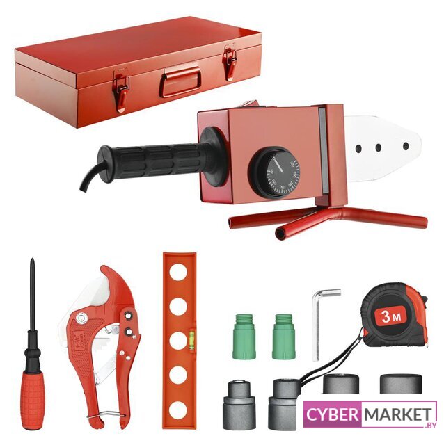 | Комплектация | Аппарат для сварки - 1 штПодставка - 1 штКейс - 1 штНасадки - 20, 25, 32, 40 мм - 4 штКлюч шестигранный - 1 штНожницы для резки труб - 1 штУровень - 1 штРулетка 3 м - 1 штОтвертка - 1 штПластиковая заглушка - 2 шт |
