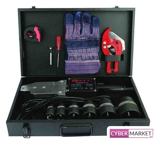аппарат, 1500 Вт, мечевидный, 300 °C, термостат, нагрев 5 минут, с тефлоновым покрытием, насадки 20 мм/25 мм/32 мм/40 мм/50 мм/63 мм, труборез, кейс