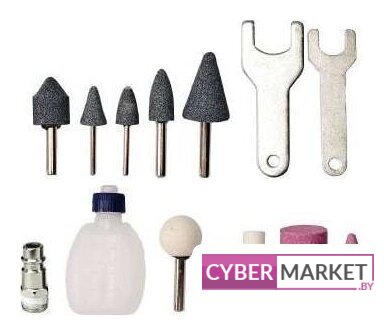 | Комплект поставки | - Пневматический инструмент для шлифования, полирования, гравировки и удаления загрязнений;- 10 шлифовальных штифтов для широкого спектра применений;- Масленка;- 1 разъем для подключения шланга; - 2 ключа;- Фирменный пластиковый кейс. |