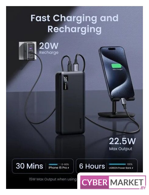 30000 мА·ч (111 Вт·ч), выходы: 5 x 5V/9V/12V (3000 мА), быстрая зарядка