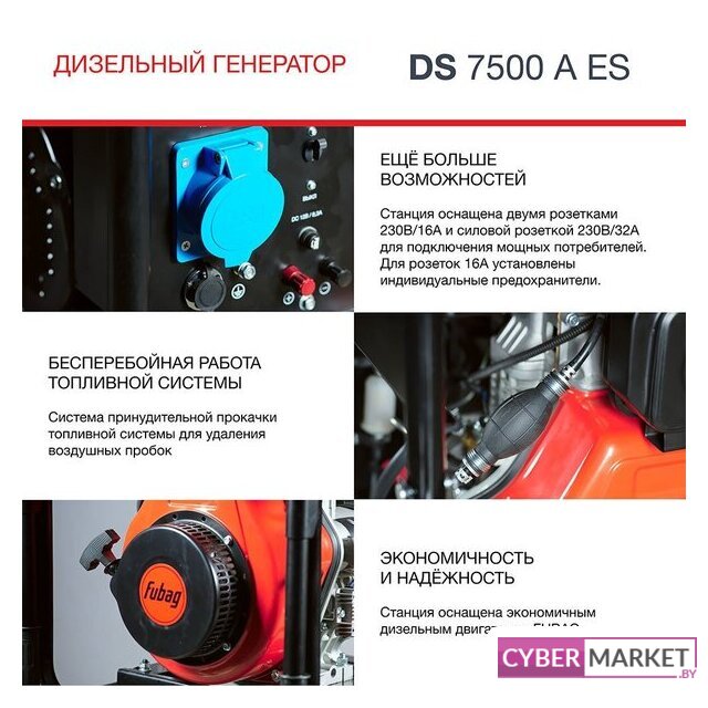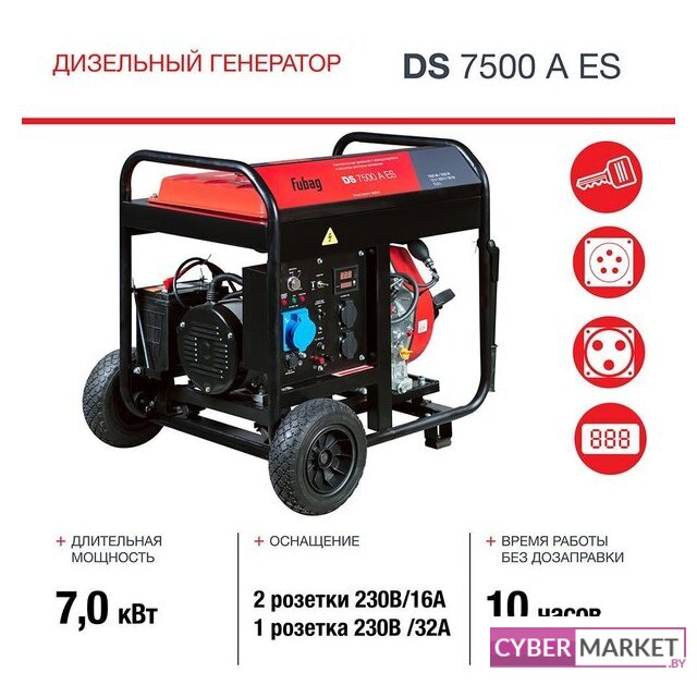 | Комплектация | Генератор - 1 шт.Вилка 230В/16А - 2 шт.Вилка 230В/32А - 1 шт.Ключи 8-10, 14-17, 13-16 - 3 шт.Транспортировочный набор колес и ручек - 1 шт.Топливная воронка - 1 шт.Кабели для зарядки аккумулятора - 1 шт.Инструкция по эксплуатацииКоробка |