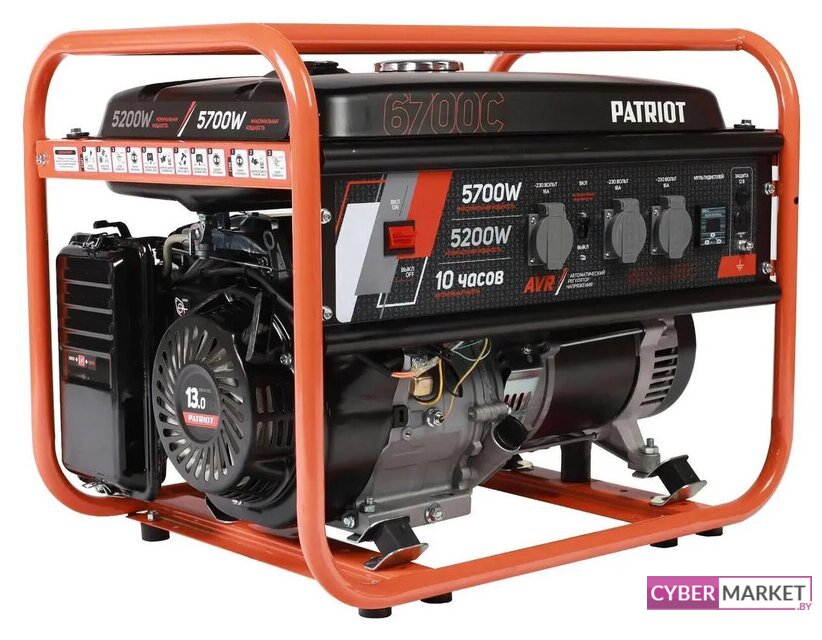 бензиновый, исполнение: открытое, 5 кВт, запуск: ручной, время непрерывной работы: 10 ч, 70 кг