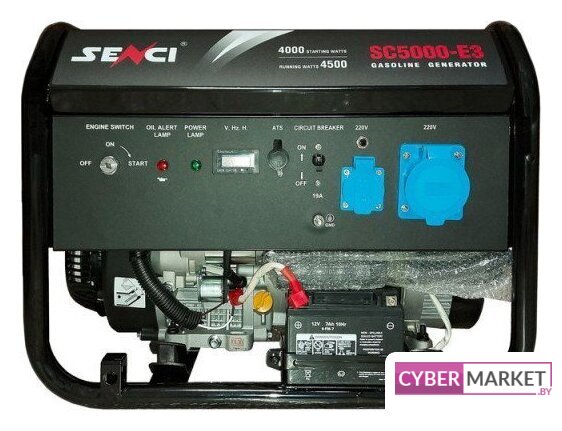 бензиновый, исполнение: открытое, 5 кВт, запуск: ручной/электростартер, время непрерывной работы: 12.5 ч